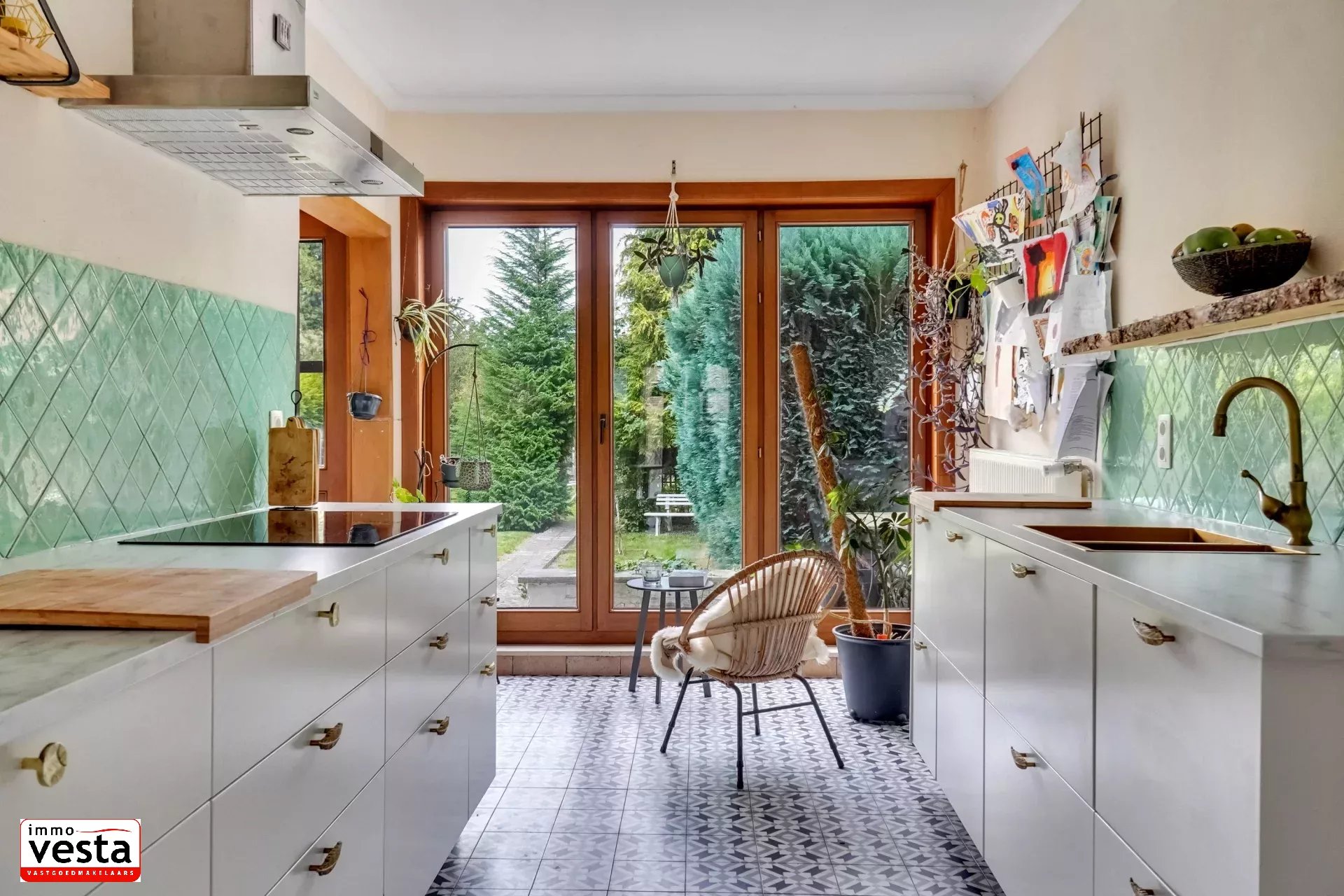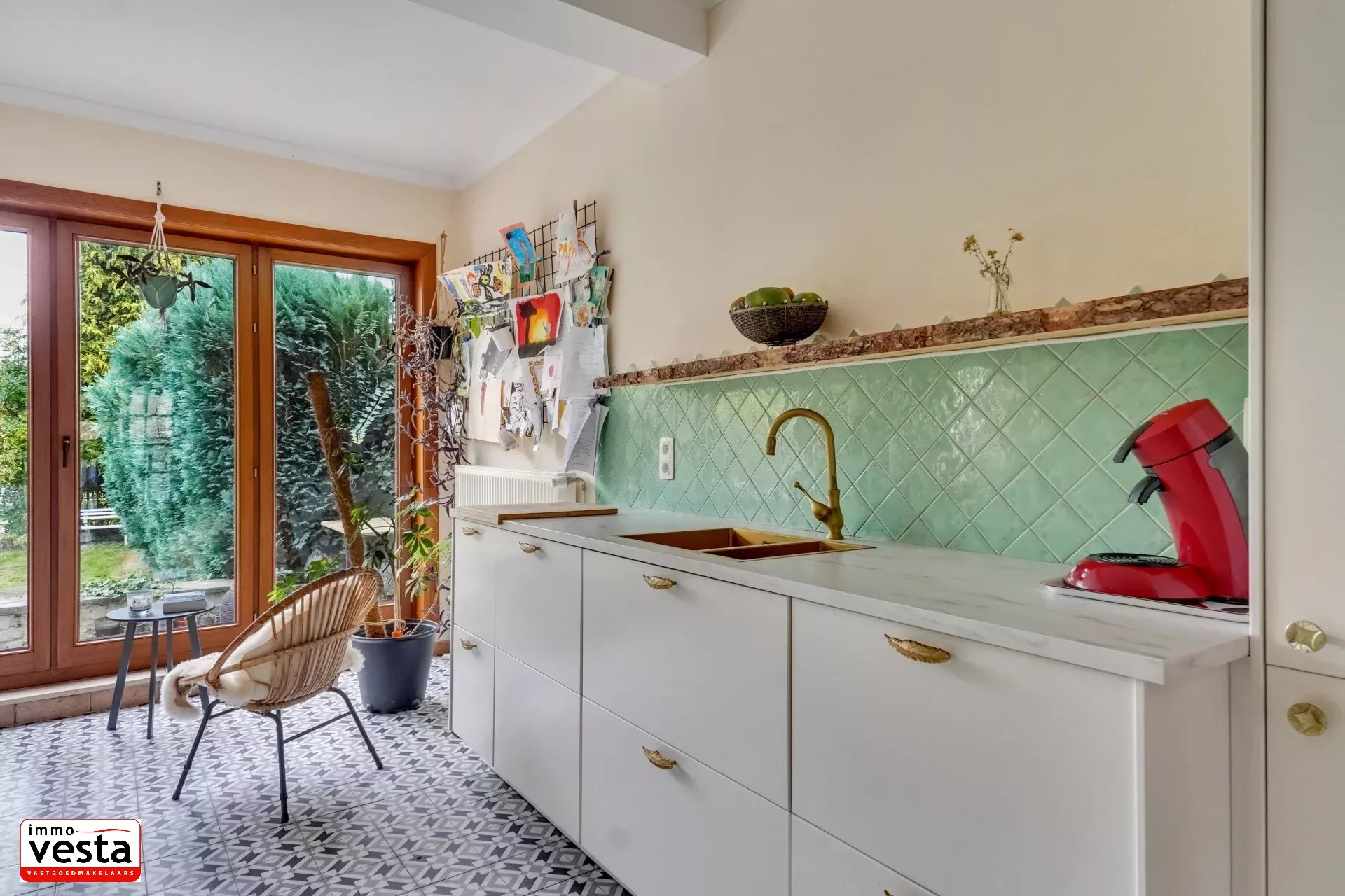 Deze sfeervolle woning beschikt over een zeer ruime woonkamer, een moderne keuken, twee slaapkamers, een grote badkamer, twee toiletten, een extra berging/dressing en een kelder. Ook een garage is voorzien.